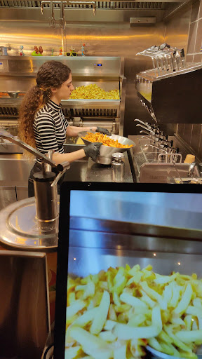 ย ย ย Read moreIf you're vegan and you're looking for a cool place to have some fries with something other than ketchup, know that Amsterdam Fries have a variety of sauces and dips for their freah and tasty fries. They also offer vegan sausages and corn dogs. The service is quick and kind, and the food is served with zero plastic! the packaging is all recyclable paper! The atmosphere is cool and there's room for outside seating with tables that can hold your cone of chips! About the only complaint I have is that some of the fries...