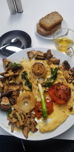 Purely disgusting, was given dirty and broken dishes, cup and plate were so dirt, as i was cleaning it in front of the waitress, she asks if i would like for her to go clean it...? Why weren't they cleaned before i was given them. It was 5 mintues before 12 i was told my order for the main dish wouldn't be put in until 12. i ordered dessert that i had to eat before my main dish because 5 minutes makes a huge difference here... 40 mintues later at 12:40pm, i get my main dish, the roasted mushroom and other vegetables, i separated all the vegetables and notice the asparagus wasn't included, i asked the waitress if they ran out, she offered to show me the menu so i can check what goes in the dish, never came with the menu. Terrible service, or just discrimination since I'm not a regular customer and just visiting the state. Just keeps pacing back and forth and not asking me a single thing. This is a mockery... could be a great restaurant if they actually cared about their customers and cleanliness. Also, don't sit by the bar, it's the most uncomfortable place to eat by, the seats are bolted into the floor and you can't move them, forced to sit extremely close to the table. When asked to sit elsewhere, oh you can't... or, "it's reserved" whole time i sat there, not a single person came to sit there... but you guys don't care since you already have your daily customers who makes up your business, the rest are irrelevant. The little patio outside in the back is so dirty with stained pillows that you guys won't even care to...