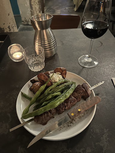 For a "healthy" start, a salad with fresh and sun dried tomatoes, some goat cheese, arugula and pine nuts. Simply dressed with vinegar and oil. The tomatoes simply tasted good here, no comparison to the "water bombs" from Spain or the Netherlands, which are served so often in Germany. The main course was a filet mignon skewer with green beans and grilled potatoes. The meat was medium raw to the point, but a little too cold when served. Tasted delicious, with a little pepper and, above all, the Full Body Malbec from the Negev desert rounded everything off. I'll take it again when I come back.😋 The beans were very „al dente“ (just the way I like it and not so overcooked). The grilled potatoes were amazing! Yummy, next time I could eat a whole plate by themselves. Finally, an obligatory dessert: a chocolate mousse with hazelnut crumble. Just reading the dessert menu caught my eye (better: mouth 🤣). The alternative was a mango lassi, which reminded me of an Indian restaurant, but why trying not next time?🤩 And a mint tea to warm me up, it's getting a bit fresh in the evening in November already… Conclusion: “to do” when visiting...