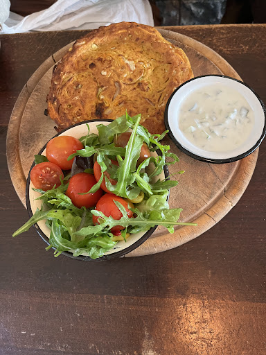 We ordered a variety of dishes: Eggplant Tahini Bowl - This dish was a standout, combining creamy tahini with roasted eggplant, fresh herbs, radishes, and a sprinkle of spices. The balance between the earthy eggplant and the richness of the tahini was delightful, making every spoonful feel hearty and wholesome. Served with flatbread, it was a comforting and filling dish. Salad with Fresh Bread - A fresh, crisp salad of mixed greens, radishes, red onions, and tomatoes paired with a slice of hearty, seeded bread. The salad had a light dressing that complemented the ingredients without overwhelming them. It was a perfect accompaniment, offering a refreshing contrast to the creamier elements of our meal. Side Salad - This smaller salad of cucumbers, radishes, and tomatoes was simple yet flavorful. It added a nice touch of crunch and freshness to the meal, rounding out the flavors nicely.