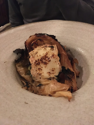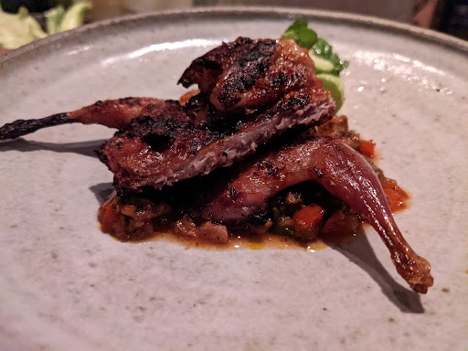 Read moreWe loved the local vibes and food. Our dish ranking of what we had: The sashimi with its brilliant lemony sauce. That was the best sauce of the night. The raw greens salad and its splash of labane were just delicious. The corn ice cream had these awesome spicy candied pieces. Never thought I'd enjoy a corn ice cream. The charred kohlrabi is interesting and super unique. The bread came with two simple spreads. One eggplant based and the other tomatoe based. The pasta/spaghetti was thick and filling but I prefer softer pasta that's cheesier. The pigeon was salty, tasted like chicken, and the little sauce and veggies next to it weren't too interesting.