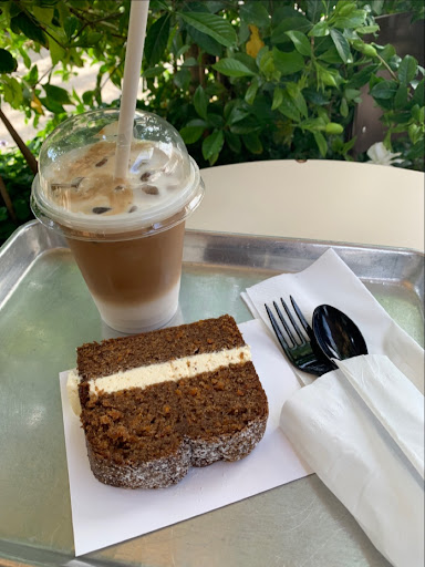 Such a cute place! I got a yummy iced coffee with almond milk and a piece of their famous carrot cake which was divine and indeed worth the hype. The prices are very convenient, which was a nice surprise since I expected the food to be way more expensive due to its great quality and it being freshly made. The service was amazing, the guy who took my order was super nice and had a very cheerful and happy vibe. The seating area is peaceful and quite with great music selection. Great for a chat hangout with a friend or even for studying. Very recommended! Would come there again and I already plan on visiting again and trying...