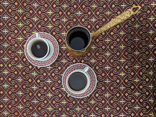 Arabic coffee here is not just coffee. It is a deep and intense symphony of flavors, rich in spice notes, with bitterness and a slightly sweet aftertaste. It is served in traditional small cups, and each sip is imbued with oriental magic, leading to a world of soft pillows, incense and warm hospitality.