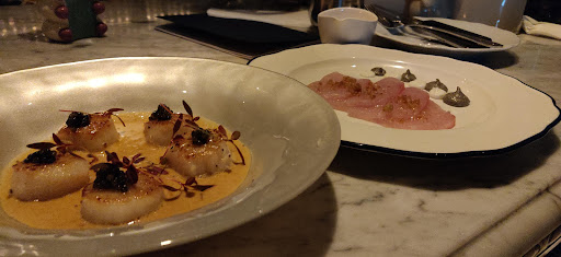 If you haven't been in a fairytale lately, now you have a chance - newly opened FANTASTIC bar/restaurant/lounge/getaway place. [I could refer to it by any of those names as well as by rabbit hole, greenhouse, Alice's place and some others. For clarity sake in my review I'll refer to it as a restaurant.] Fantastic offers you uniquely designed interior which transfers you far away from your daily reality, creatively crafted cocktails, fine dishes menu, professional and efficiently-built service. It all starts when you enter the reception of Port & Blue hotel and turn left toward the restaurant. You greeted by the hostess and wait in the library by the fireplace till one of the waters leads you to your table in the Ball room. As you move along the way you pass various spaces (leave that to your personal observations) which differ in lighting, sound, atmosphere. The cocktail bar deserves a separate story. I'll leave it to my next visit which will be focus primarily on it. Entering the dining area we immediately gave credit to it design, ambience, thoughtfully placed tables (unlike in many Israeli restaurants which attempt to fill the place to its maximum, and beyond, capacity, Fantastic offers enough personal space to enjoy intimate, yet public surroundings), waiters dressed like in Wonderland, and many little details the designers did not miss. The food was very good. From Mushroom Tea to Poached Drum fish to Scallops - everything arrived in a distinct colorful way with blending tastes of its components. Goose breast and Pork belly were prepared very well. And we couldn't leave without indulging on Chocolate Ganache balanced with Crepe Suzette. Yes, of course, don't leave this place without visiting bathrooms! Even if nature doesn't call you there. See your true face there in many mirrors:) I name it "Total Immersion" into one-of-a-kind culinary-leisure experience. HIGHLY...