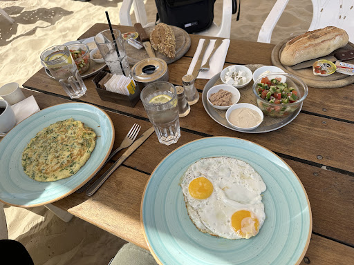 Read moreLala land has a few good things going for it, in the restaurant business location is key and you really can't get any better than being on the sand on the beach, but for a restaurant that mostly caters to tourists and rich people I would expect the food quality to be a little more high end even if I have to pay a little bit extra . We ordered a breakfast each, and paid just a little under 150 shekels, for that price I would think that: A. The kitchen would get my order right- I ordered 2 eggs over easy and got them sunny side up B. I'd get more than just olive oil on my salad C. The portions of the sides should be bigger None the less, we came for the atmosphere and we got it for sure Great for business meetings and wine by the beach, if you want good food go somewhere else