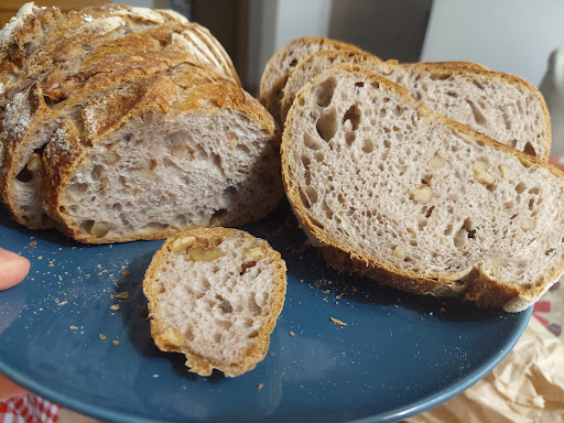 הלחם עצמו לחם שיפון אגוזים(25 ש''ח): קראנצ' מסביב אורירי ונעים באמצע הלחם-שילוב מצליח וטוב,הורגש כמות קראנצ' נעימה וטובה של אגוזים רכים,המליחות של הלחם לא מוגזמת והלחם עצמו באמת משביע מאוד 💖💓 לחם אורירי נעים ומשביע