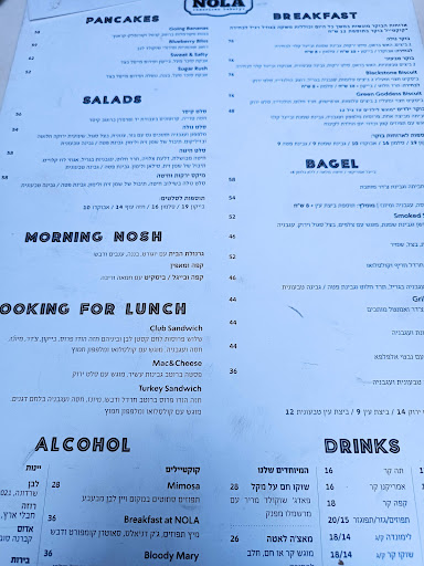 Read moreIt's taken a few years to finally get here but was worth the wait, as was the wait for a table on a Friday morning full of heavy downpours. There are not many tables and most of them are suitable only for couples but the 3 of us hunched around a table for two. The concept is American style and menu has an excellent selection of bagels and pancakes. We all chose the house breakfast of eggs, hash brown, cream cheese, chopped salad and toasted bagel of choice and additional real bacon. The eggs were cooked perfectly, the salad was seasoned well, the cream cheese was of good quality, the hash brown was unlike any eaten previously and the classic plain bagel was the real deal. With a hot drink included, Nola offers not only a great breakfast but good value for money, which in today's environment is hard to find. Can't...