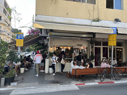 Read moreLove the atmosphere here. It really feels like one of the main spots in Florentine where people come to hang out and enjoy - especially on Shabbat, where it’s nice to have the option to come and sit somewhere lively. There’s lots of seating both outside and inside - most of the vibe and good energy I would say is outside, while inside is really spacious with lot of room in the air-con to work on your laptop. People also use the public seating outside, so the customers sort of spill out from the corner the cafe is on in all directions, which really adds to the vibe of the place. Also lots of shade to sit under outside. It’s really busy but in a good way, and the wait time isn’t long. I came really wanting an almond croissant, which they didn’t have, but I got the brioche knot bun and it was really yummy. I’m currently on a mission to find the best iced chocolate in Tel Aviv, so I tried theirs here and it was superrr strong (and this is coming from someone who really likes a strong iced/hot chocolate) and I never thought I would say this, but actually probably too much powder and not enough milk. They make it using powder rather than actual chocolate, but the powder was good quality, so that was ok. They leave the milk and sugar syrup out though, so you can adjust to your taste, which was a really nice option to have. The location is also perfect for dog lovers, as you can just sit and watch all the doggos pass by,...