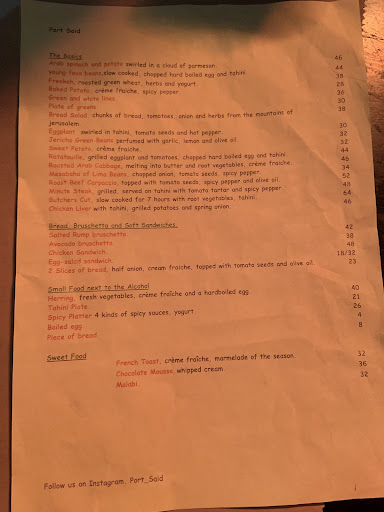 The main thing about the menu is the Casual Middle Eastern touch of Eyal Shani which is famous Israeli chef that made his career not from food but from talking about food, or maybe more accurately about over glorifying food so even the most simple ingredient would seem like itโs divine foodย . This place is so casual that you canโt reserve a table, so keep that in mind. The โPort Saidโ is heaven for vegetarians, most dishes are but you carnivores will love the Minot steak (our favorite dish). Dishes are not expensive, simple and genius at the same time. Alcohol however is not very cheap, but this is good balance if you ask us. The โPort Saidโ is so fresh and cool, you should write it down in...