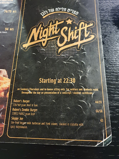 Definitely not one of the best burgers in Tel Aviv I ordered a Ruben burger with chips which they told me is the classic option. The chips were crispy and tasty. They were left with the skin which was nice, but unfortunately they were also very greasy. The burger itself comes with vegetables on the side and you add them yourself to the bun. That is fine but the choice of sauces on the other hand is very weak. Mayonnaise and ketchup from some American brand are not what you should get at that level of prices. On the other hand the bun was good and the burger itself was tasty and had a great smoky taste. And bottom line, it is always special to sit at a terrace of an eatery on...