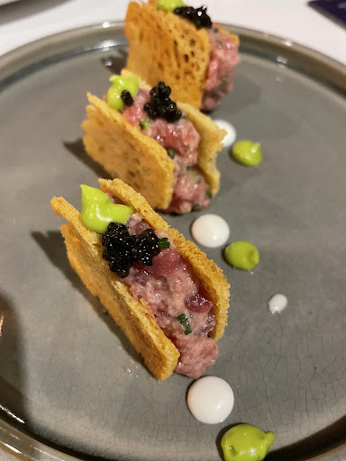 Eli, the chef that evening, was great company, essentially hosting us as an audience to the Shila dinner theater! Charming, engaging, and fun to watch, he brought us into the great vibe of the retaurant. With three chefs working simultaneously, one of them being trained that night, we got to watch as they painted plates with sauce, filled avocado with fish tartar, correct seasonings, customize salads, adjust appearances for presentation ... it was really fun and interesting. So, these were not the second choice seats we expected - the experience and Eli himself, really stood out for us in a great way.