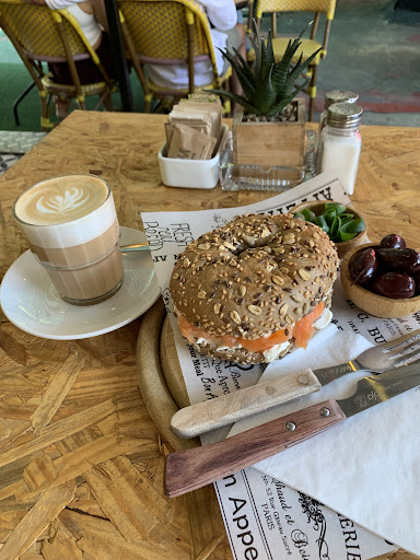 Read morePerfect cafe on the corner of the Carmel Market, with seats just off the main drag, where you can see the hustle and bustle but nestle safely at a table out of the way. Great food for everyone. We had vegan quiche (they offer multiple choices of fillings) and vegan chocolate banana cake (which was very moist), salmon and cream cheese on bagels, and regular egg quiche with mushrooms. The coffee was delicious, and the best part was the service. Very kind, helpful, friendly owners and staff, who were a joy to spend time with. So happy to have had our last breakfast in...