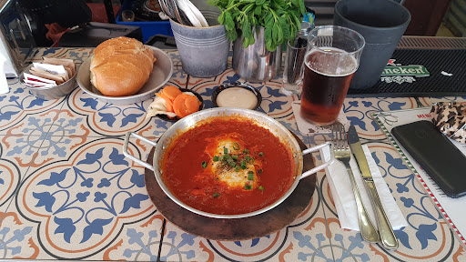 Read moreVery friendly barkeepers and waiters. I had the classical Shakshuka, and it was just delicious! It is being served with pickled vegetables, tahini, and bread. They also serve here multiple brands of beer, local and international ones, as well as some cocktails. The atmosphere here is great, as there's also locals eating here, discussing things loudly, and in the background local music is being played. Definitely...