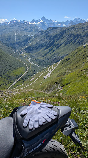 Ordered a hot chocolate as it was really cold on the motorcycle and quite rainy/snowy. I asked the waiter if he knows a place to buy some gloves that I can wear under my normal ones. The dude asked around the staff and returned with a pair of brand new gardening gloves. I wanted to buy it, but he refused. You my man, are my hero. Gloves are coming in clutch on all the passes I climb....