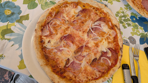 Dopo una pausa, decido con amici di tornare a mangiare nel locale, ho prenotato sabato 19 per domenica 20 agosto 2023 alle 19:45... . La pizza abbastanza buona ma un po cara. 6 euro per una birra "bianca" , 2,50 € per due cucchiai di maionese all'aglio, 6 euro un radler 04, 3,50€ per un radler piccolo02...diciamo che la banda bassotti al confronto è acqua santa. Servizio scortese ed inopportuno, modello caverne. C'era scritto che la cucina e la pizzeria fossero aperti dalle 19 alle 22, 22 significa nel mondo con materia grigia che fino alle 21:55 si possa ordinare pizza o altro. Alle 21:40, eravamo 9 persone, ci cacciano via con la scusa che era tardi e che avevano un appuntamento...e mentre si parlava un attimo al volo per salutarci nel parcheggio tra coloro i quali si era condiviso la cena, in maniera troglodita( erano le 21:48), hanno pure spento le luci del parcheggio. Non solo non ci vedranno più, farò pure promozione a potenziali clienti affinché non ci andassero... Mai più!!! Pippo Lazzara, 1 6 73 Ludenscheid (D) Italo-tedesco. Bye PS quando già nell'antica Roma si mangiava la carne cotta, e condita, i popoli barbari la mangiavano cruda ,a morsi, e con la...