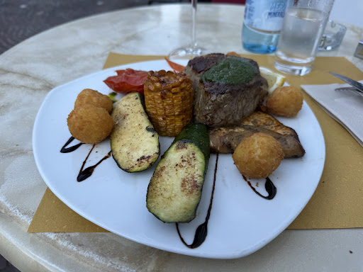 Read moreWir waren nun schon dreimal hier, doch das war mit Abstand die schlechteste Erfahrung und wird uns davon abhalten, wieder zu kommen. Das letzte Mal vor zwei Jahren war alles wirklich gut. Heute ähnelt das Konzept einer Massenabfertigung. Das Essen ging einfach so schnell, was eindeutig darauf hinweist, dass alle Speisen schon weitesgehend vorbereitet sind. Die Pizza war einfach nur Durchschnitt. Die Idee von dem Fitness Salat ist wirklich gut und mal was besonderes jedoch wird das Obst einfach lieblos auf den Teller geschmissen, in großen Stücken, so dass es absolut keine Freude bereitet, sich ans Essen zu machen, weil man erst mal mit dem auseinandernehmen des Obst es beschäftigt ist. Der Preis von 23 € für einen Salat, auf dem vier Garnelen, fünf Hähnchenstreifen und eine schöne Auswahl an Obst zu finden sind, ist nicht mal gerechtfertigt. Sage und schreibe ein Salat Blatt war auf dem Teller. Sehr schade. Das war für uns leider das letzte Mal. Das Ambiente ist an sich wirklich nett. Jeder stehen die Tische mehr als schief und für vier Personen ist ein kleiner Tisch einfach auch nicht...