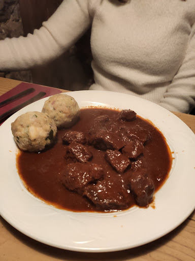 Entrando in quest'osteria nei mesi invernali si verrà investiti da un un calore ed un'atmosfera unici, i tavoli di legno e i soffitti in pietra sembrano riportarci indietro in un periodo medioevale ma allo stesso tempo fiabesco. Noi abbiamo provato a prenotare telefonicamente ma per la grande affluenza di persone è stato impossibile, fortunatamente arrivando presto siamo riusciti a sederci ad uno dei tavoli alti con gli sgabelli. I modi del proprietario e degli altri camerieri sono sbrigatevi ma mai maleducati, anzi sono abbastanza attenti alle esigenze del cliente, questo rende l'osteria ottima se si vuole mangiare senza perdere troppo tempo, non esiste un vero e proprio menù cartaceo anche se fuori dall'ingresso sembra essercene uno, il proprietario viene al tavolo e vi dice i vari piatti presenti quel giorno tra cui scegliere, quando siamo andati noi erano circa quattro o cinque opzioni. Noi abbiamo preso un piatto di goulash con canederli e uno di goulash con polenta, alla fine abbiamo preso una fetta di strudel e da bere una bottiglia d'acqua da un litro, il prezzo totale è stato di 37€. Il goulash era tenerissimo e molto saporito, l'abbinamento con il canederlo è molto più consigliato rispetto a quello con la polenta, e anche lo strudel servito tiepido con la salsina alla vaniglia è davvero da provare. Il locale accetta i cani, ma con la presenza di un animale magari verrete messi in un tavolo a parte rispetto alle tavolate di legno, su quest'ultime possono sedersi più clienti diversi il che potrebbe anche favorire una discussione o chi lo sa, magari un'amicizia. L'osteria è un po' fuori mano, ma se avete l'opportunità di cenarvi sappiate che è pienamente...