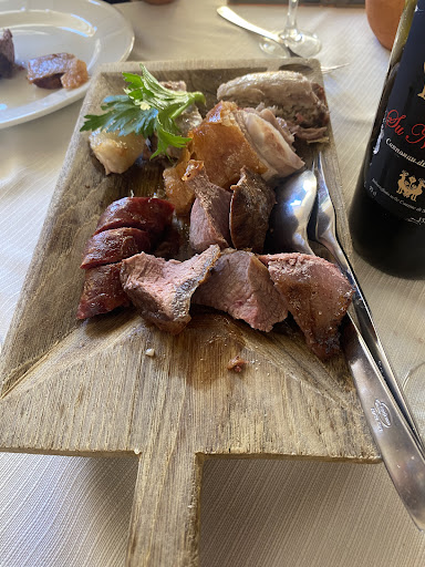 Bel posto, bella location, servizio veloce e molto casalingo, accogliente. Peccato per il cibo, mi era stato descritto come un posto dove si mangiava abbastanza bene e le portate erano molto abbondanti ma purtroppo non è stato così; eravamo 6 persone, abbiamo chiesto 3 antipasti di terra, che sono risultati giusti per 6 persone, quindi una buona partenza; arrivano i primi: 5 maccarrones e una tagliatella, due terrine con all'incirca la stessa quantità di pasta all'interno, una però che doveva essere mangiata da 5 persone, che quindi è risultata poca ovviamente, anche se buona, ed una che addirittura era sufficiententemente abbondante. La caduta del tutto è arrivata ahimè ai secondi, 3 misti di carne arrosto per 3 persone, e 4 contorni di patate; arriva un tagliere di carne in cui: la salsiccia era un po' secca e la vitella abbastanza fredda per essere della carne alla brace. Nulla da dire sul maialetto che invece è risultato buono e caldo. Male le patate: 4 contorni e ci viene propinato un tagliere in cui facendo la divisione, risultavano 4 patate a testa per le 4 persone che le avevano ordinate; alla nostra richiesta del perché fossero così poche ci è stato prima detto che era giusto così e poi ci è stato portato un altro tagliere di patate che sembravano scaldate al microonde. Alla loro richiesta di caffè e dessert abbiamo ovviamente declinato essendo rimasti alquanto delusi. Al totale del conto ci sono stati scontati 60 euro, che alla fine ci ha permesso di pagare il tanto giusto per quanto abbiamo mangiato. Dispiace dover dare una recensione negativa, purtroppo ci saremmo aspettati di più.PS. Complimenti invece per il vino, molto buono, al massimo torneremo solo per prendere quello, per il cibo invece purtroppo, ripeto ci saremmo...