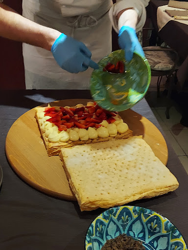 Cena x festeggiare il compleanno di un amico. Ci avevano parlato bene delle capacità dello chef Mattia ...e non siamo rimasti delusi!!! Tutt'altro. Cena a base di pesce che Mattia sceglie personalmente. Iniziamo con un antipasto di polentina calda con le schie. A seguire un piatto con cappasanta, branzino, granseola e gamberi...cotte con assoluta maestria e presentate in modo accattivante: una delicatezza per i palati dei presenti. A seguire tagliolini fatti in casa con scampi crudi (cotti x chi lo desiderava): dal sapore delicato ma persistente. Il tutto accompagnato da un vermentino di Gallura Argiolas, assolutamente all'altezza delle ottime portate. Da ultimo, il colpo finale dello chef, il millefoglie con crema pasticcera realizzato in presenza da Mattia. Che dire...la qualità del servizio, la bontà e freschezza degli ingredienti, la bravura e simpatia del giovane chef meritano più di una visita ...se non altro per gustare i numerosi piatti che lo chef ha...