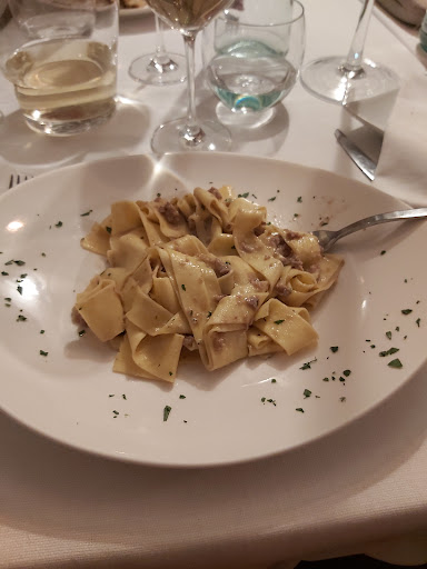 Locale molto simpatico, con ampio parcheggio privato. Siamo stati il giorno di Pasqua. Molto buono il risotto con le erbette e la lasagna primaverile molto delicati A mio gusto la tagliata di manzo era buona, avrei solo un consiglio da dare (ed anche x questo ho messo solo 4**) a non tutti piace la tagliata cotta a metà magari prima si servirla sarebbe bene chiedere come si vuole la cottura e poi altro consiglio si vedeva che la carne è stata messa in cottura una sopra l'altra e non affiancate, perché risultavano pezzi "crudi" da tutte e due le parti... In compenso il mio cane ha apprezzato i pezzi rimanenti (di tutta o quasi la tavolata) che ho riportato a casa. Personale gentile e veloce forse un pochino troppo veloce.. Tra una portata e l'altra date un po' di tempo x far andar giù ciò che il nostro palato ha appena mangiato, alla mia compagna stavano togliendo il piatto coi bigoli che stava ancora apprezzando, dopo ti senti anche un po' in imbarazzo. È una critica benigna serve x migliorarsi. Per il prezzo non so dirvi xkè il pranzo ci è stato offerto. Comunque è un locale...