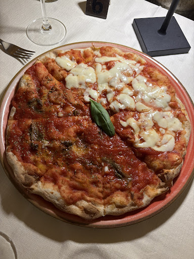 We were looking for a nice place to have dinner during our stay in Abano Terme, and we came across this restaurant that immediately caught our attention, as it is located underground (which I assume is also the origin of its name). Upon entering, you find yourself in front of a very stylish bar. Unfortunately, we hadn’t made a reservation, and the staff recommended that we should. Luckily, we still managed to get a table and have dinner. The menu is quite straightforward, offering a decent variety of choices including meat, fish, fried dishes, and a few pizzas, simple but diverse. We ordered an aperitif, pizza, and a portion of French fries. The staff was very kind and accommodating, and the service was quick. The pizza was average: tasty, though the dough felt a bit heavy. The portion of fries, on the other hand, was very generous. The atmosphere was calm, and the dim lighting made the experience very pleasant. Prices, however, are on the...