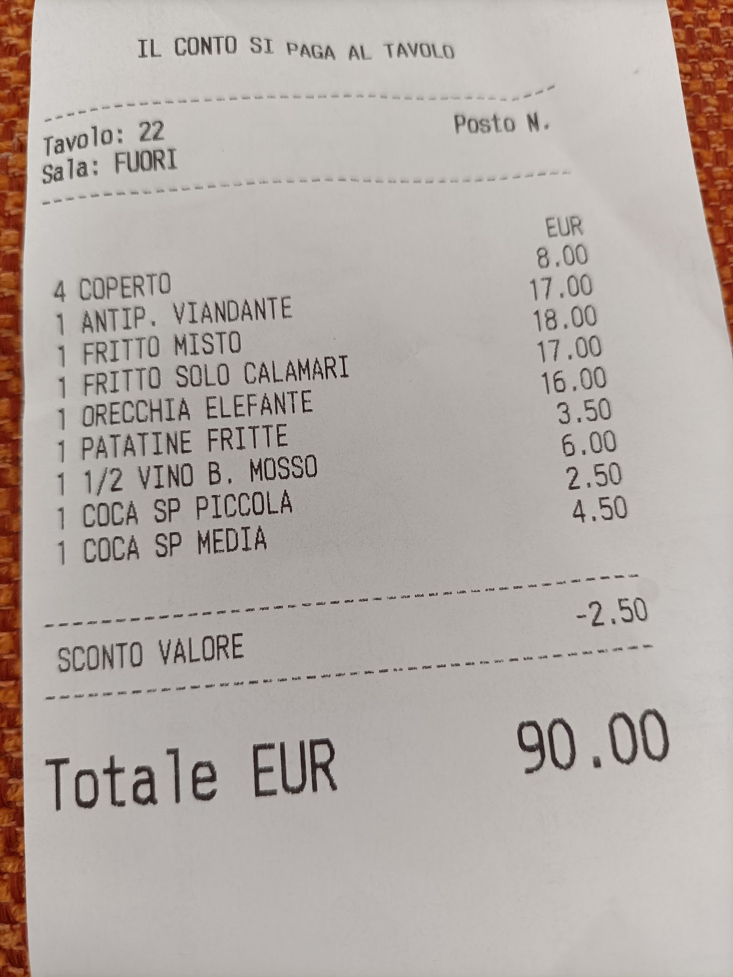 Segue replica alla risposta del ristoratore. Se ritiene vi sia stata, nella mia recensione, maleducazione, oppure offesa, ha il sacrosanto diritto di farla rimuovere. Evidentemente doveva trovare qualcosa da replicare, veritiera o meno che fosse. Falso asserire che il resto della mia famiglia abbia poi mangiato. I piatti che sono arrivati, ALLE CALENDE GRECHE, ve li siete riportati indietro così come si vede nellle foto. I bambini si sono nutriti del pane che l'unica gentile del Suo locale ha portato, dopo aver visto la situazione ed espresso il più profondo dispiacere per l'accaduto, cosa che Lei non s'è nemmeno degnata di fare. Lei di gentilezza non ne ha affatto usata. Noto, invece, che l'unica focalizzazione nella Sua risposta sia incentrata sul NON PAGARE. Sicuramente non ha compreso la situazione, ma nemmeno io ho pazienza nel ribadire quel che Le ho già detto. Mi limito a replicare che quella che Lei definisce "lamentela" avrebbe perso "senso" se io fossi uscito lasciandola a mani vuote, cosa che non è accaduta. Le ho chiesto di farmi pagare quel che avevamo consumato e lì sarebbe dovuto scattare il buon senso che non ha usato, chiaramente per mero e avido interesse, nel calmierare il totale. Ma sa, non mi perdo per queste cose. Si goda pure il maltolto. Anzi, usi stavolta buon senso e lo dia come extra all'unica educata che ha tra...