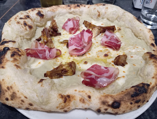 -Scenica alla vista; Calda quando viene servita; non gommosa e facilmente masticabile; la massa interna ben cotta, priva di parti “bagnaticce” ( errore comune di molti pizzaioli); lievitazione della pasta di pane eccellente in quanto gli alveoli interni alla pizza sono tondi e non sono delle gallerie; assenza di bolle esterne ( a conferma dell’ottima lievitazione della pasta di pane); cottura uniforme e nessuna bruciatura. cornicione perfetto LA MIGLIORE BUFALINA CHE ABBIA MAI MANGIATO! Date una medaglia al pizzaiolo e alla proprietà per averlo scelto.