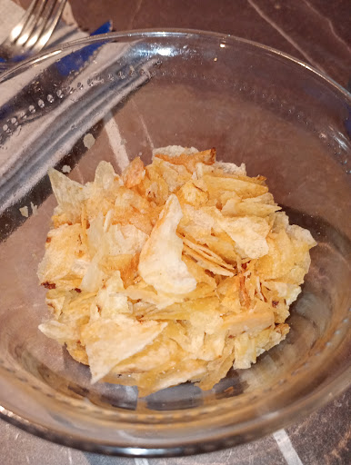 We began our evening with an aperitif, priced at €12 per person. While the drinks themselves were enjoyable, the accompanying snacks left much to be desired. We were served a handful of standard peanuts, olives, and what could only be described as the bottom of a crushed chip packet. For the price, we expected at least a fresh, presentable selection—something a little more thoughtful and appetizing. Unfortunately, this fell short and gave the impression of cutting corners, which was not the best first impression.