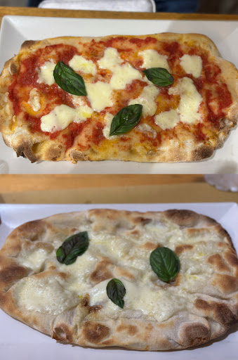 Il posto meriterebbe zero stelle per la bassissima qualità del servizio. Dopo aver preso l'ordinazione abbiamo aspettato circa un' ora e mezza prima che cominciassero ad arrivare le portate. Io ed un' amica avevamo ordinato due pinse sposate (1 Contrasti senza pistacchio e 1 Acqua Ranni) ed una volta arrivate al tavolo ci siamo rese conto che erano invece state sposate per errore 1 Acqua Ranni e 1 Chiazzette (ordinata invece singolarmente da una terza persona) mentre la Contrasti senza pistacchio, scelta da me perché allergica al pistacchio, è arrivata per intero. Facciamo presente l'errore a un primo cameriere più confuso che persuaso; al che arriva un secondo cameriere affermando che l'errore era stato mio durante l'ordinazione, insistendo pesantemente per circa 10 minuti anche di fronte ad altre due persone sedute accanto a me che avevano sentito il tutto e confermato la mia versione. Oltretutto alla nostra richesta di mostrarci la comanda (vista la prepotenza del cameriere) quest'ultimo si è rifiutato permettendosi anche di prendere per i fondelli con le parole "Si ma non c'è bisogno che ti alteri". Alla fine le pinse non sono state rifatte ma solo aggiustate nei piatti e la terza persona ha dovuto prendersi una pinsa già tagliata e riunita in un piatto. Ad ora di pagare, la comanda è stata riportata indietro con il conto e ha confermato la correttezza della mia ordinazione. Non sono state poste nemmeno delle banalissime scuse in merito alla maleducazione del cameriere e per tale motivo non tornerò sicuramente.