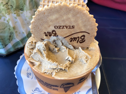 A potom? Skutečný sladký ráj! Čokoládová zmrzlina, která byla jednoduše velmi čokoládová – hustá, krémová, ale ne přehnaně sladká. K tomu sušenka s jahodovou náplní a tartaletka s jablky, chutnající jako ten nejlepší domácí jablečný koláč. Jedním slovem – dokonalost! Pokud chcete zažít pravou Sicílii, Blue Bar Castorina Franca je místo, které