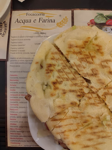 Read moreEntrato per caso alla Focacceria Acqua e Farina ad Acireale, giusto per consumare uno spuntino in attesa che spiovesse, sono rimasto sorpreso! La focaccia porchetta e crema di patate era davvero eccellente, con ingredienti freschi e sapori ben bilanciati. Il locale è semplice, presentandosi come un forno con banconi espositivi pieni di proposte invitanti. Il servizio è gestito dalla commessa/cassiera, che è stata rapida e cortese. Unica nota: i prezzi sono un po' sopra la media rispetto a un classico panificio, ma la qualità giustifica la spesa. Perfetto per una pausa gustosa e di qualità. 4...