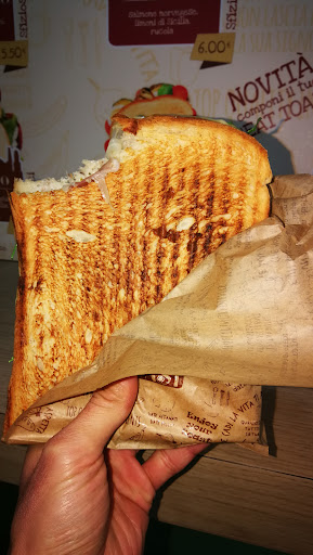 Read moreTrovandomi ad Acireale ho voluto provare questa toasteria. Il ragazzo alla cassa, davvero gentile, disponibile e cordiale. Che dire ottima accoglienza. Per quanto riguarda i toast, beh, abbastanza delusa... Non ricordo il nome dei toast, ma, uno con le patate al forno c'erano 3/4patate e solo prosciutto, tutto sommato, nonostante fosse poco farcito, mangiabile, l'altro, credo si chiamasse boscaiolo, totalmente immangiabile, perché i funghi all'interno, sarebbero dovuti essere trifolati, erano bruciati, e il forte odore di bruciato ci ha impedito di mangiarlo. Avrei dovuto dare 1 stella ne ho date 3, per il buon servizio e la piacevole accoglienza. Tornerò perché tengo all'accoglienza del cliente, che è stata per me positiva, e spero che mi farete ricredere sulla...
