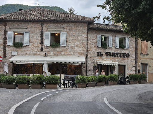 Domenica torrida di luglio e gita alla Gola del Furlo, posto incantevole e ancora decisamente sottovalutato e, sopratutto non molto manutenuto, si può fare di più. Pranzo ad Acqualagna appena dopo il Furlo venendo da mare, posto che vive di tartufo (soprattutto il bianco autunnale), quindi l’estate non è stagione. Andiamo ad un punto di riferimento dell’enogastronomia locale. Il ristorante ‘Il Tartufo’ in centro del piccolo borgo (p.s. se ti perdi ad Acqualagna non sei messo bene). Locale piccolo con pochi posti (una trentina credo) ma molto accogliente, c’è una saletta bellissima con un’unico tavolo in una specie di cripta con affreschi ancora visibili, e già questo meriterebbe una visita a se (quanti gioielli nascosti abbiamo!). Pranzo con antipasti misti al tartufo e primi sempre al tartufo estivo, in particolare i passatelli erano notevoli (pasta molto sottovalutata) ma anche gnocchi e tagliatelle erano ottime; una menzione alla frittatina di tartufo tra gli antipasti, il connubio tra questi due elementi è simbiontico! C’è da sottolineare che il tartufo estivo non è il tartufo bianco e che il suo profumo ed il suo sapore non sono paragonabili al suo più nobile parente ma comunque ne vale la pena. Servizio ottimo e ‘entusiasta’. due piccoli appunti, uno generale uno particolare. Il coperto da due euro non sta ne in cielo ne in terra, la cosa inizia ad essere stucchevole, il coperto è una tassa nascosta che DEVE essere compresa nel prezzo delle portate; due c’è stata una invasione di mosche e questo perchè nella porta d’ingresso (aperta per il troppo caldo) non è stato messo nulla, li si può intervenire. Per il resto assolutamente da consigliare: baluardo della tradizione con attenzione al futuro; avete l’oro... sappiatelo...