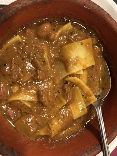 Read moreFanno la farinata migliore del mondo, la adoro: crosticina croccante e sotto morbida, quasi cremosa, un po' di pepe sopra ed io sono disposta lasciare qualsiasi piatto ricercato; questa farinata mi riporta all'infanzia quando mio nonno mi portava alla fiera di Santa Caterina e poi nella Cuntro' di Panise' a mangiare la "bele cauda". Mi lascio però tentare ogni tanto anche dagli altri piatti della tradizione acquese, soprattutto lo stoccafisso, i peperoni con la bagna cauda e la trippa, "la buseca", tutto buonissimo ..... andate a provare e...