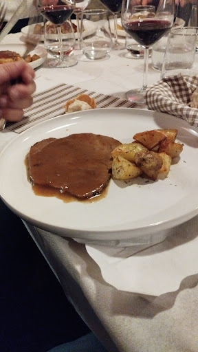 L’antipasto misto era composto da un vitello tonnato con troppa salsa, che copriva completamente il sapore della carne, una tartare nella media e una sorta di insalata russa molto semplice. I primi piatti (come si può vedere dalle foto che ho caricato) avevano un sugo troppo liquido, quasi annacquato, e nel complesso mancavano di gusto: gli ingredienti non spiccavano. Il dolce – una pesca al vino – è stato il peggiore: né la pesca era buona, né il vino usato per sciropparla era gradevole.