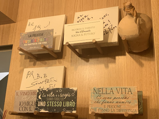 Ho soggiornato nel loro B&B Sandro Pertini e quindi sono rimasto lì a cena. Non avrei potuto fare di meglio! Oltre all'accoglienza che ti mette subito a tuo agio, dispongono anche di un vastissimo menù ed una carta dei vini eccellente. Ma io non ci sono stato troppo tempo a sfogliarli, visto che il titolare mi aveva suggerito lo spezzatino "come una volta". Si trattava di trippa di capretto deliziosa che mi fece ricordare quella pietanza che una volta prepara a mia mamma. Eccezionale! L'ambiente è molto carino e ben curato in tutti gli aspetti. Sarò ripetitivo, ma ci tengo a ri-lodare la cordialità e l'operosità di tutti del team, titolari, bariste, cuoco e pure tanti frequentatori che pur con riservatezza hanno tutti una buona parola o un...