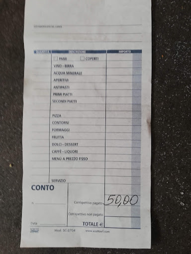 Read moreSiamo giunti in questa trattoria con la gentilezza del personale dove ci veniva precisato che saremmo stati trattati molto bene. Ci è stato offerto l'antipasto di focaccia e prosciutto che non si sa se comprende nel menu oppure è offerto dalla casa, ti rimangono col dubbio, poiché non ordini l'antipasto ma loro te lo portano ugualmente, quindi non sai come comportarti, perché se un cameriere ti porta contro la tua volontà un antipasto vai a pensare che sia offerto dalla casa, invece poi non è così, lo si scopre alla fine con la bella sorpresa. Dopo l' antipasto mai richiesto procediamo col primo (tonnarello ai funghi porcini) poiché non abbiamo tantissima fame ordiniamo un solo primo da dividere in 2, lo stesso facciamo con il secondo, ordiniamo una grigliata mista per una persona poichè non abbiamo tantissima fame. Al momento del conto vediamo che non ci sono i nomi dei piatti ma solo il Prezzo da pagare, però facendo i calcoli sono stati segnati 2 primi e 2 secondi con l'incognita del antipasto e delle bibite senza sapere se sono offerti o se erano a pagamento, senza sapere l'importo di essi poiché non c'è un menù! Abbiamo chiesto spiegazioni e ci è stato detto che abbiamo preso 2 primi, invece no, avevamo ordinato solo 1, lo stesso il secondo di carne, avevamo ordinato per 1 persona per poi dividere in 2. Penso sia molto scorretto nei confronti del cliente, abbiamo pagato senza fare polemica e siamo andati via poiché non ci si.è comportati in maniera onesta.