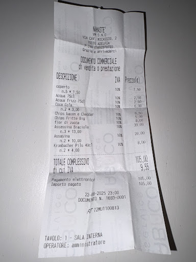 Read moreNonostante io viva a pochi metri dal Namastè non mi è mai balenato il pensiero di trascorrere una serata lì. Vedevo sempre frequentato da tantissimi giovani. Ma amici mi avevano detto che vi era un servizio di ristorazione (e scopro ora anche da asporto), molto interessante. Beh, sono andato già 3 volte nelle ultime settimane. E devo dire che sono rimasto profondamente estasiato da alcuni piatti. In particolare i Tonnarelli al Wakisoba, con e senza pollo. Ma l'assassina (proposta in 3/4 varianti), non è da meno. Sono un appassionato di assassina. Ho frequentato un corso di cucina barese e mi sono specializzato solo in quella. Ho girato parecchi ristoranti del barese per confrontare i loro piatti. Ma ho avuto modo di apprezzare anche molte altre portate a base di carne e non. Chips bacon and cheddar are delicious. I'm italian american. I miei complimenti allo Chef Luca. Un grazie a Giuseppe per la gestione del tavolo, ma tutti gli addetti ai tavoli sono attenti, gentili e professionali. La lista dei vini non è giustamente molto assortita, ma rivolta ad abbinare i piatti preparati. Per le birre non mi pronuncio in quanto non esperto, ma sono convinto che anche li nulla è...