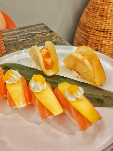 Read more🏬 Il locale non è grandissimo, conta credo tra i 30 e i 40 coperti, ma è molto caldo e accogliente, l'ambiente è pulito e moderno. 🤵♀️ Il personale è molto giovane e gentile, chi più estroverso, chi meno, ma nulla da rimproverare. 🍣 Il cibo non è male. I piatti sono vari ed in linea con altri sushis poco più distanti. Ci sono piaciute in particolare le salse sui nigiri di salmone scottato, sul carpaccio e sulla tartare di salmone. Fantastico, ci torneremo assolutamente. 💰 Il prezzo è conforme con i competitors. Abbiamo mangiato qui a cena. Abbiamo pagato 23.90 € per il menù AYCE a testa, 2 € di coperto e 1.50 € di 0.75 L di acqua (si vede...