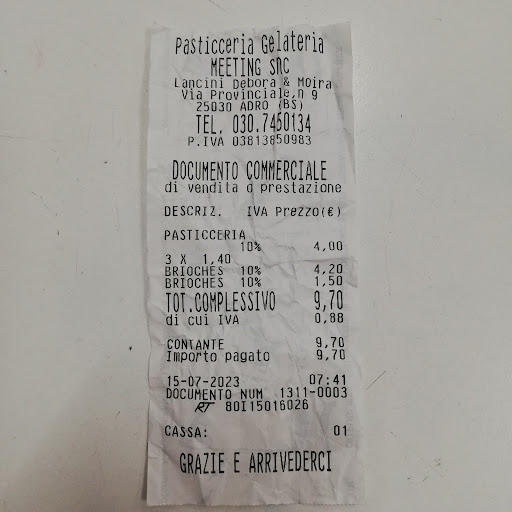 ** Allego lo scontrino. Noi siamo venuti nella sua pasticceria...... Come vede nessuno vuole sceditarla.