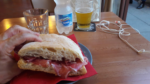 A huge variety of "panini" that is basically and Italian version of sandwich. A middle class kind of restaurant with a small but good selection of beers and sides. If you want to eat an Italian sandwich with cheese, salami, prosciutto, speak and similar option you can't go wrong in this place. Expect to spend around 15E per person...