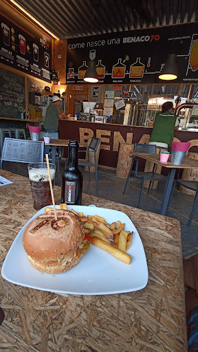 Read moreSiamo arrivati qui da Affi dato che nel bar dove eravamo prima non c'era cucina calda la sera (errore nostro). Arriviamo in questo quartiere industriale e parcheggiamo dentro al cortile del pub a pochi metri dai tavoli dove abbiamo mangiato. Nell'aria si sente rock classico, le lucine sono appese agli alberi e tutti gli avventori sono rilassati dietro alle loro birre. Ordiniamo panini e birre mentre il mio bulldog francese e quello dei miei suoceri fanno amicizia con tutti gli altri clienti (i soliti estroversi). Birra buona, forse meglio un po' più fredda, ma di tutto rispetto. Io mi sono preso un panino al pulled pork e mi ha soddisfatto sia in termini di sapore che quantità (mi sentivo bello sazio). Dopo aver finito di mangiare abbiamo fatto un po' più che small talk con Marco, che ci ha portato bere e mangiare nelle due orette precedenti ed è stato ai giochi con le battute che ci scambiavamo, rendendo la cena molto piacevole. Da tornarci, di sera (visti i caldi di...