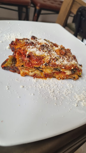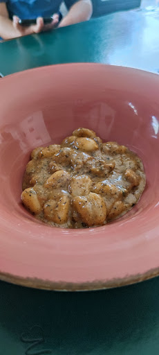 Read moreTrovo questo locale cercando su internet. Ma bando alle ciance, arriviamo nel locale e ci accorgiamo del posto curato, con una illuminazione non accecante, anche a causa del tempo nuvoloso, ma non mancava di accoglienza. Optiamo per 3 antipasti, una parmigiana di melenzane, ben cotta, con un sugo che non sapeva solo appunto di sugo, ma si vedeva che era condito bene e che si sposava con le melenzane fritte; un flan di patate e funghi porcini davvero delicato e soffice, ottima la quantità di parmigiano; e delle polpettine di black angus al sugo, buone anche queste, magari io avrei aggiunto qualche spezia in più per farle più saporite, ma posso capire che non piacciono a tutti. Poi abbiamo scelto 1 kg di manzetta prussiana, servita con al di fianco la pietra di ardesia dove potevamo scottare la carne. Sulla carne nulla da dire, frollata benissimo, sapore delicato e per poco si poteva tagliare col cucchiaio, da provare! Il tutto accompagnato da una bella bottiglia di Sangue di Giuda. Come contorno abbiamo scelto le patate al forno, preparate con cura e cotte benissimo. Qualche nota storta è stata la mancanza di salviettine imbevute, che a mio avviso in un osteria del genere così bella non dovrebbero mancare, altra cosa il servizio è stato a tratti frenetico e a tratti confusionario, ad esempio più volte ci sono stati avvicinati piatti al tavolo che non avevamo mai chiesto. Nulla che non si possa cambiare, piccole accortezze che renderanno questo locale ancora più bello. Il tortino al cioccolato cotto divinamente cremoso al punto giusto, da provare anche questo! I prezzi sono quelli di un osteria, quindi non sono ne elevati ne bassissimi soprattutto perchè la materia prima è di un livello...
