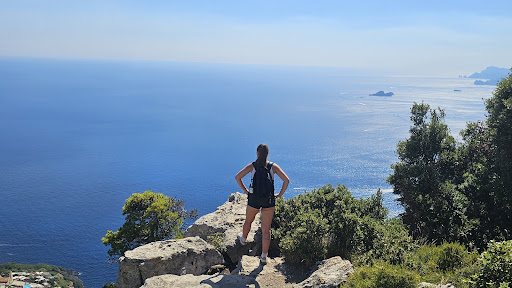 The view from the hotel is absolutely stunning, stretching across the distant Tyrrhenian Sea, and there’s a charming garden with a seating area — plus the friendliest cat to keep you company. The location is also excellent: just a 5-minute walk to a bus stop with regular services to Amalfi (about 25 minutes away). We also highly recommend hiking the Path of the Gods for unforgettable views from Amalfi to Positano — the starting point is only around a 20-minute walk from the hotel, passing through the quaint high street of Bomerano.