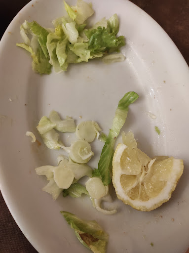 The drinks arrived: a WHITE wine and the water, then waiter 2 brought the lasagna and the ravioli WITH tomato sauce. Upon clarifying that I ordered without tomatoes, repeating I'm allergic I was rudely asked why I would order it, if it is a dish with tomatoes. He told me that I'd have to wait. Meanwhile the green lettuce salad arrived and my company finished her lasagna. She was not happy either, as her salad was full of hard parts and small black pieces (see photo). Finally I got my ravioli - without basil and cheese on top, just plain, rather cold and no olive oil - full price. But the worst part: the ravioli seemingly were just washed, as I've found a piece of tomato under the last ravioli!!! This is absolutely disrespectful and could be a severe health issue for people who are heavily allergic. The bread arrived after we finished the ravioli/lasagna. Coperta of 2โฌ PER PERSON is also quite rude for such a bad service. We will never go there again and I absolutely...