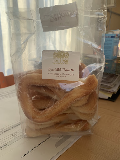 Una nuova pasticceria che ho cercato su Google.. stavamo tornando io e la mia mamma da Rueglio e mi è venuta voglia di andare a comprare dei torcetti (Agli e’ ne è la patria ) . Mi sono recata in questa panetteria pasticceria gestita da persone Giovani… ho comprato 3 pacchi di torcetti ( che mi ha imbustato al momento stesso in quanto li avevano appena sfornati ) un pacchetto di ventagli di pasta sfoglia dei biscotti… tutto buonissimo.. scusate per le foto ma mi sono dimenticata 🙈.. ah la ragazza ha visto che c’era mia mamma in macchina che mi aspettava e allora c’è ne ha dati qualcuno da...