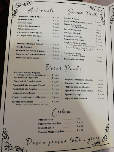Read moreRistorante trovato pensando di mangiare una pizza, in realtà per mia noncuranza la foto e la recensione che avevo visto erano molto vecchie. Detto questo abbiamo mangiato carne, in un ristorante dichiaratamente di pesce. Un filetto e una tagliata buoni, soprattutto in rapporto al prezzo decisamente conveniente. La carne era un pochettino grassa per il tipo di taglio, ma ci sta. La mia cottura media era decisamente ben cotta. L’atmosfera è decisamente anni 90, anche impiattamento, può piacere oppure no. Il personale è molto gentile e disponibile, davvero niente da dire se non grazie. Vino rosso della Casa buono, credo una Barbera del posto. La porzione di patatine fritte è abbondantissima, consiglio di dividerla in due. Il sorbetto al limone con l’aggiunta di limoncello è davvero gustoso. Anche il caffè ottimo, il che non guasta. Con un rinnovamento anche piccolo del menu e una rinfrescata all’atmosfera del locale, sicuramente può attrarre ancora di più visto che si trova lungo la strada statale...