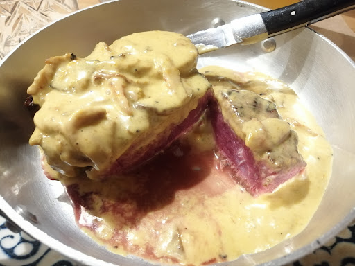 Io e mia moglie abbiamo poi mangiato anche i casoncelli (ottima rivisitazione della nota ricetta tipica, buonissimi complimenti), la tartare di salsiccia con le verdurine (buonissima, cosa che puoi permeterti di fare solo se hai carne di primissima scelta), purtroppo non avevamo piu' spazio per provare qualcosa della steak.-house, ma ci rifaremo la prossima volta.
