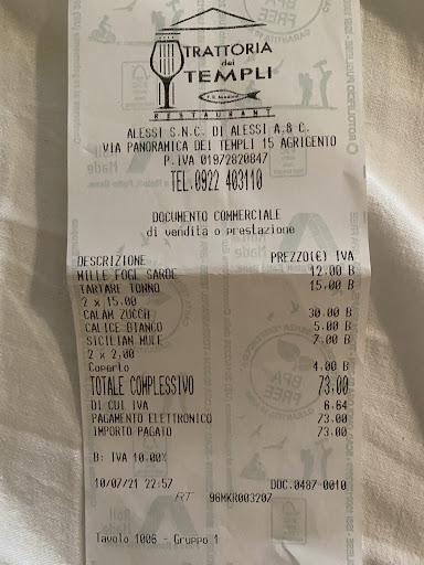 Additional: I have just seen the reply from the restaurant saying we tried to eat bread and oil for free by ordering only two primi piatti. Disaster. I have never ever seen such restaurant thinking only about making money from each client. Which else restaurant charges you for the bread and oil (after anyway charging “coperto” and saying these clients were trying to eat breads for free and restaurant was unhappy? Have no word and Very very disappointed. They wrote my husband ate loads of bread and so what? The one who had problem of stomachache and wanted to avoid drinking wine at that evening was not my husband but myself. Cannot believe such dishonest restaurant existing in Sicilia. It harmed my previous great impression on Sicilian people. But I strongly believe those dishonest and greedy people are really minority in this beautiful island.