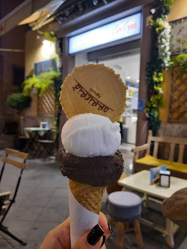 Read moreAbbiamo preso una briosche farcita con gelato due gusti, arricriá 2 e pistacchio, ed un cono cioccolato fondente e limone. Personale gentile, esaudita la richiesta di riempire il cono prima con cioccolato e poi con limone (vi assicuro che non è così semplice, e molte gelaterie si rifiutano dando come motivazione un potenziale 'inquinamento di gusto' dei cucchiai). Il gelato nella media, presentato con biscotto con logo del locale, la brioche soffice e gustosa. Abbiamo consumato al tavolo, pagando pertanto un prezzo diverso dal consumo al banco, ma nel conto era presente anche la voce 'servizio', seppur di solito 50 cent/persona.